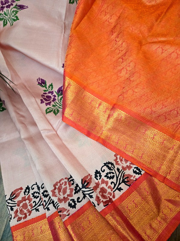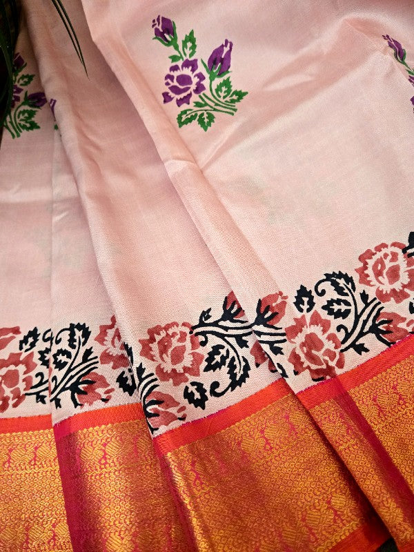 Block Printed Zari Kanjivaram Saree