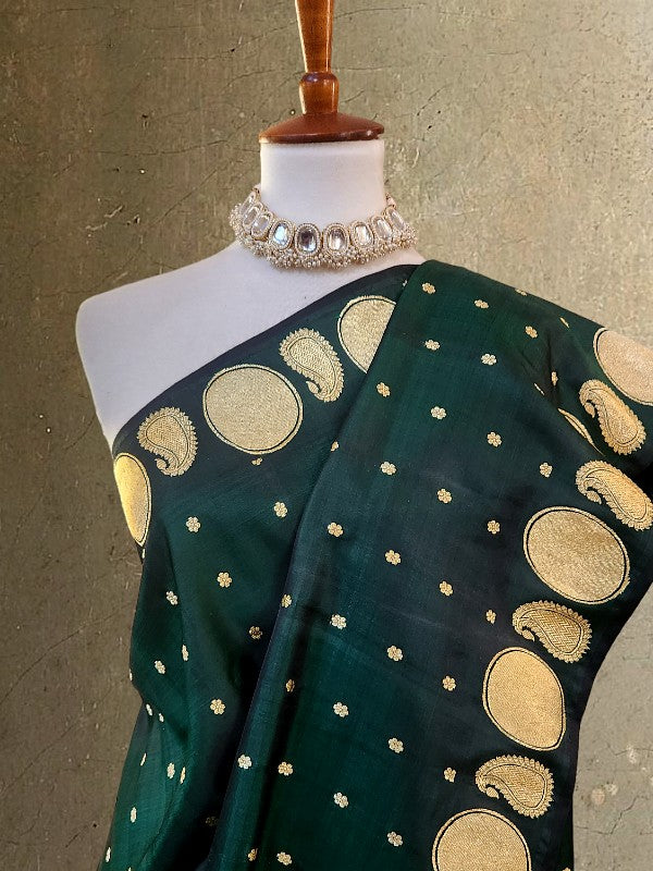 Forest Green Double Katan Banarsi Silk Saree