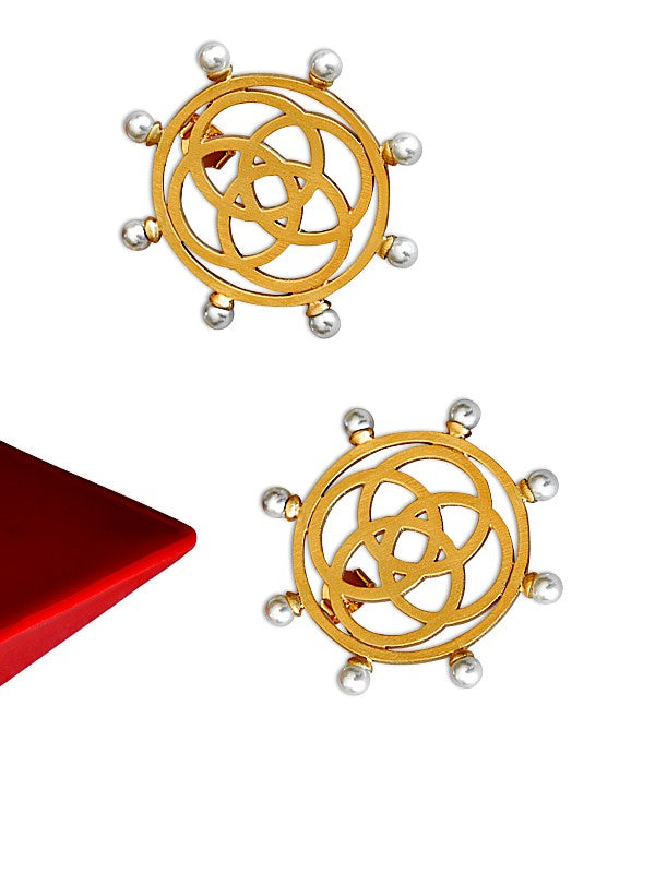 These Jamiti statement ear studs designed with circles in different sizes, is accentuated with pearls for the classic and elegant look.