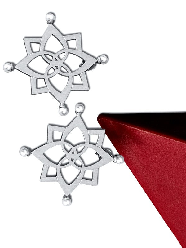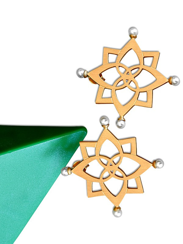These Jamiti statement ear studs are designed with overlapping teardrop shapes, and accented with white pearls for the classic and elegant look.