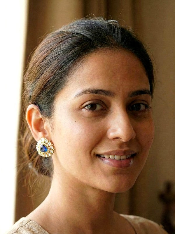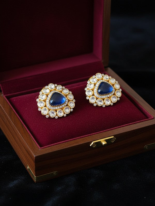Handcrafted in luminous .925 sterling silver and set with brilliant moissanite, the Noora studs radiate royal elegance and timeless charm. Featuring a simulated sapphire center surrounded by sparkling moissanite and CZs, these big studs are minimal yet statement—perfect for those who believe in the beauty of “less is more.” Versatile, bold, and effortlessly elegant for any look.