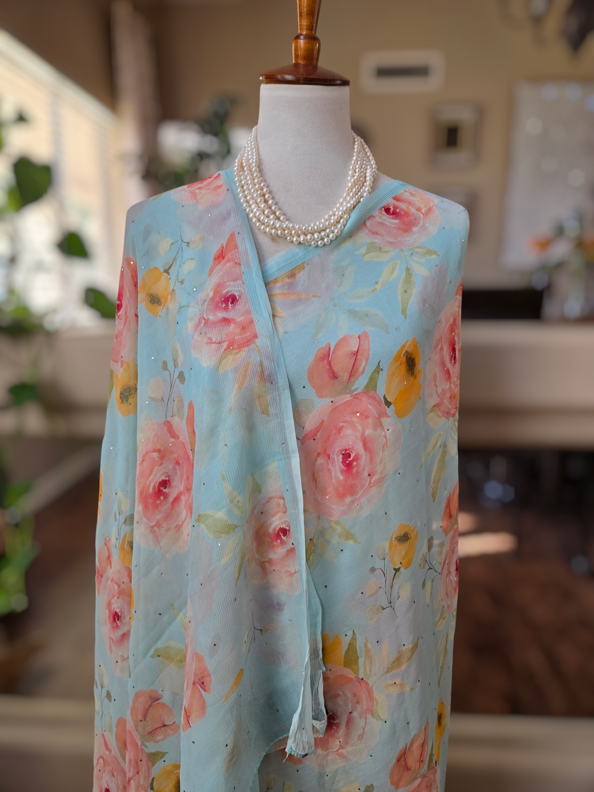 - Material: Pure silk chiffon, hand embellished with mukaish