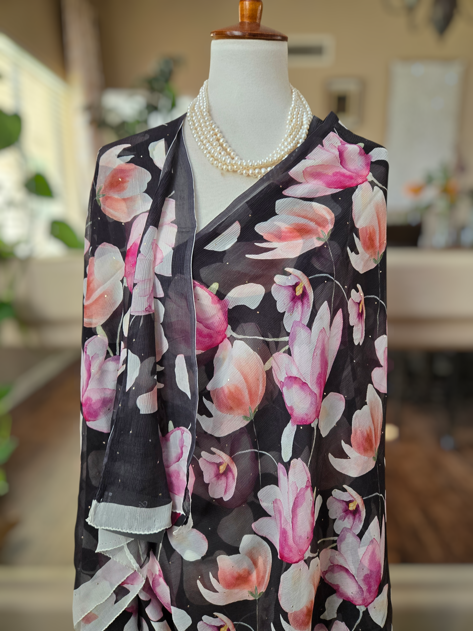• Material: Pure silk chiffon, hand embellished with mukaish