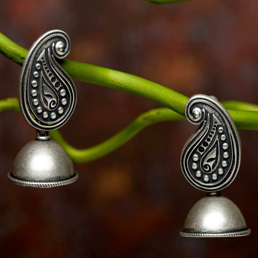 This handcrafted ear stud is made in a modular style. The earrings have the much celebrated ancient Paisley motif or pattern that is used in weaves or jewelry designs specially in Persia, India and Europe. The Sai Paisley ear stud is crafted with sterling silver and an oxidized finish, makes for a statement ear accessory – delicate yet elegant.